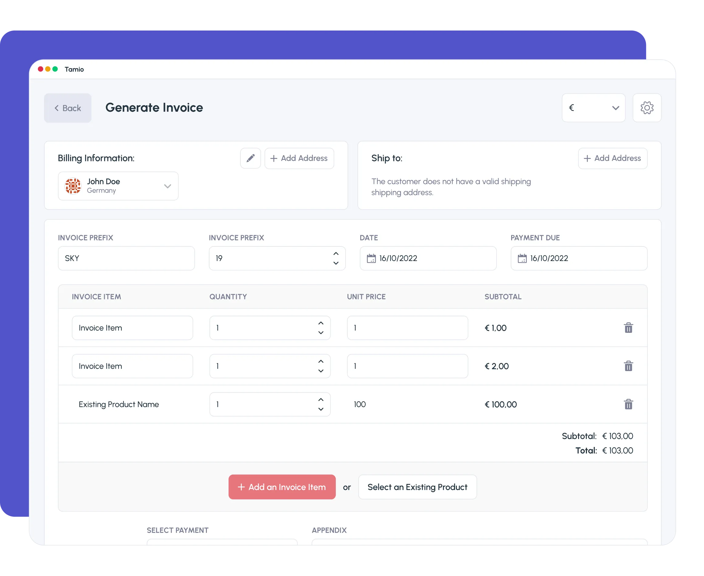 Tamio provides extensive support to create sophisticated tax rules for products and services, categories, shipping, payment, country, state, and more. Fixed rates or percentage. Pause, edit and update on the fly.