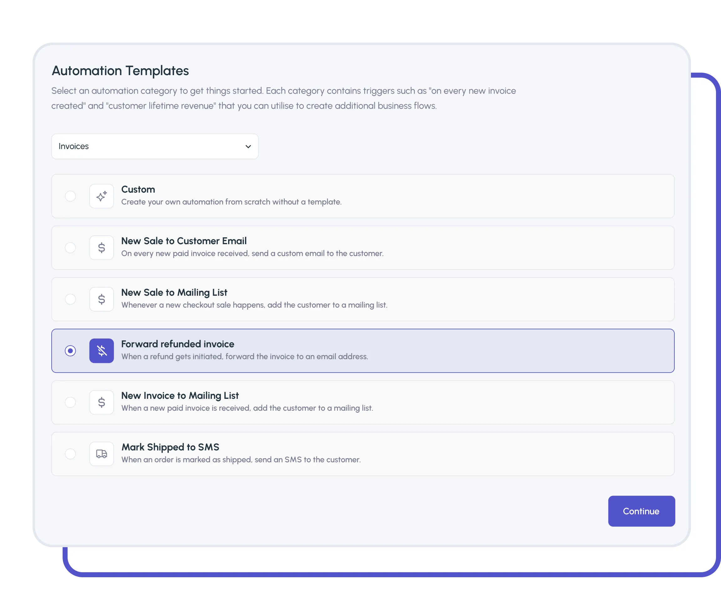 Create automations with a few clicks to invoice your customers on a weekly, monthly or yearly basis.